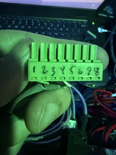 Holding the terminal block with the screw side facing down, take a sharpie and number from left to right, 1 through 8 over each of the gates.